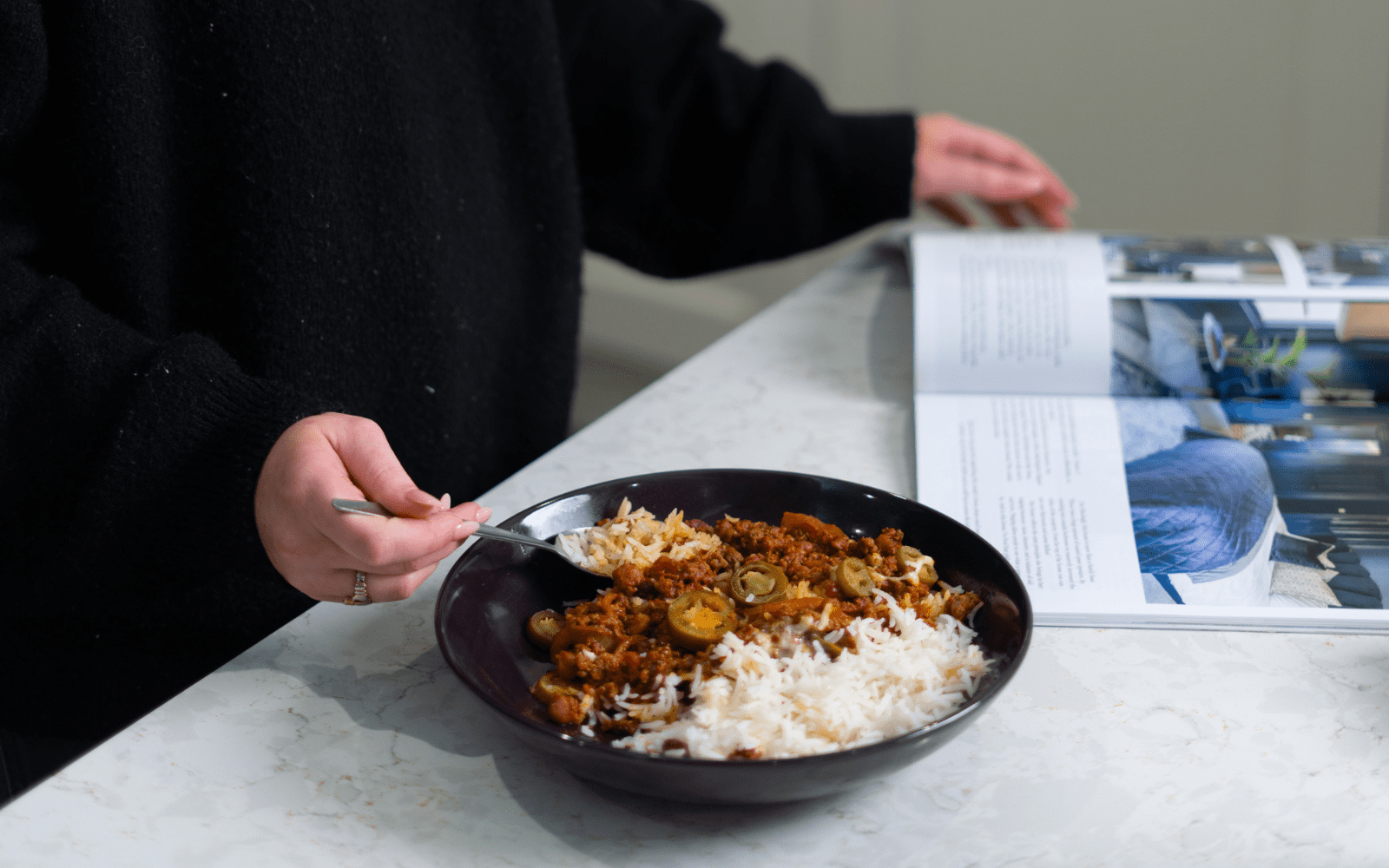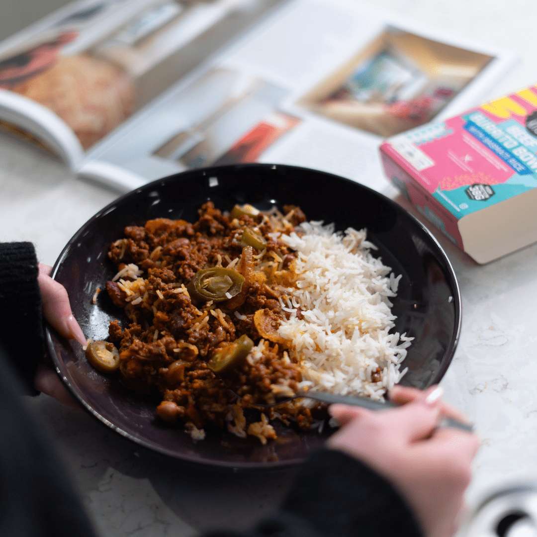 A hearty beef chilli packed with mixed beans, warm spices and fluffy basmati rice.